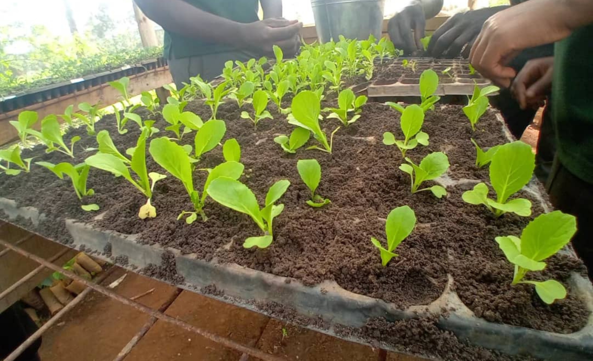 Local youth take part in a hands-on, practical session, carefully learning how to transplant young seedlings into prepared nursery trays